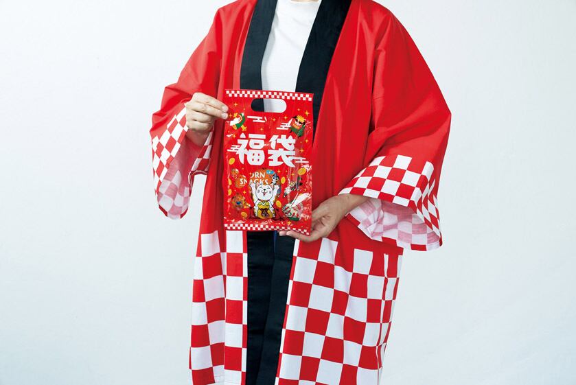 かわいいまねきねこの袋に入った駄菓子福袋です。