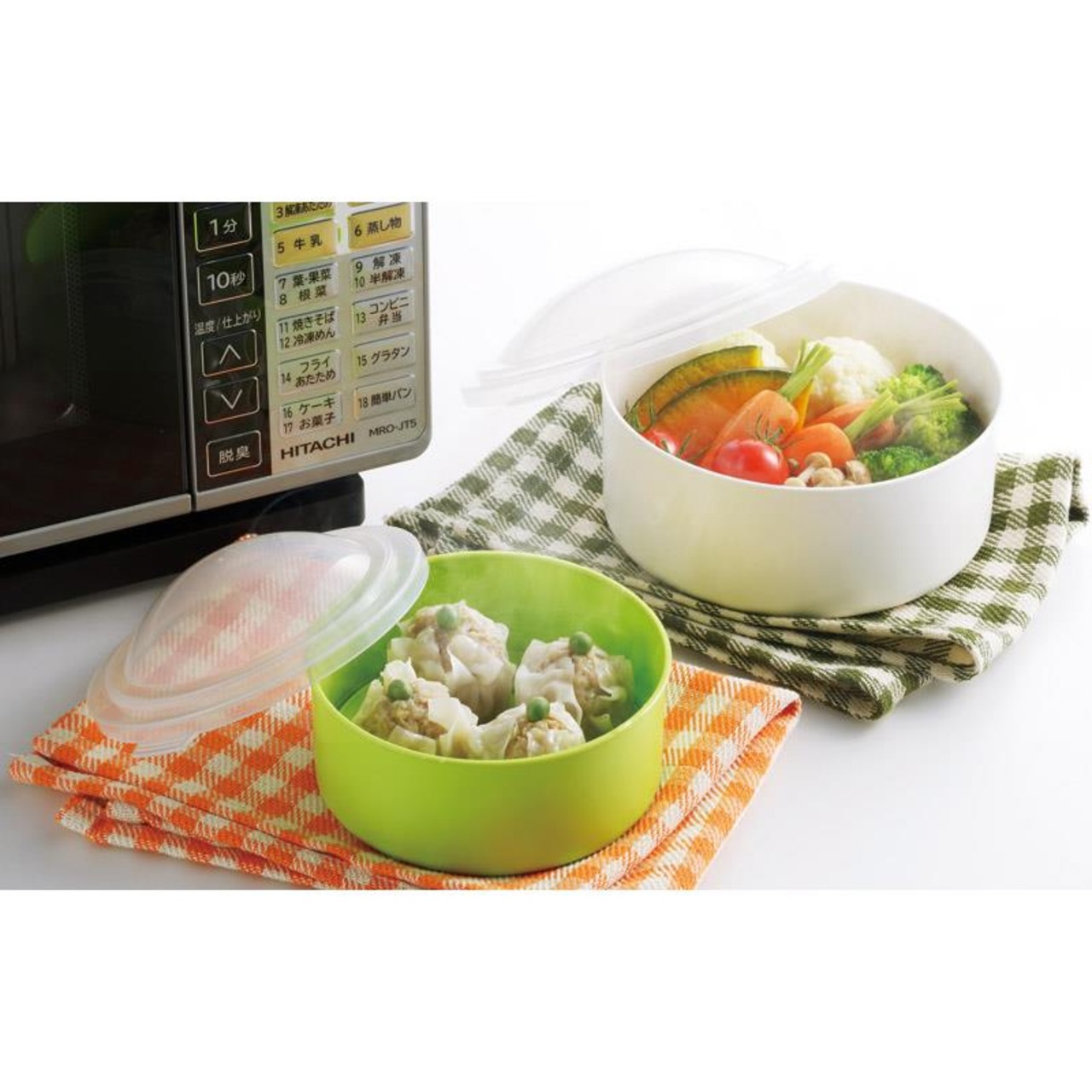 火を使わないエコクッキング。ラップいらずでさっと蒸し料理ができます。フタをしたまま冷蔵庫から電子レンジへ。目皿付なので、蒸し料理もべたつきにくく、ふっくらと仕上がります。
