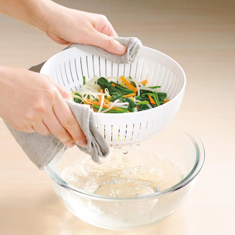 下ごしらえ、カレー、パスタまでレンジで鍋のように調理できる耐熱ガラスボウルセット。ラップ代わりに使えるシリコーン蓋(蒸気弁付)、下ごしらえや蒸し調理に便利なザル付です。