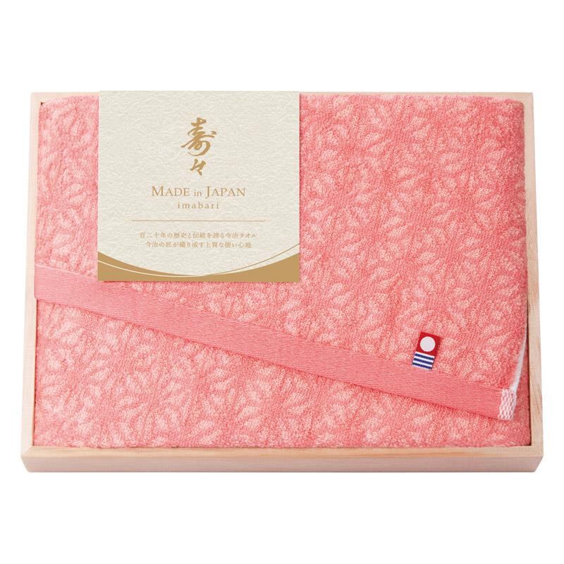 人の一生を表す紅白の色彩に成長を願う麻の葉模様を織り上げた格調高い木箱入りの今治タオル。成長の願いを込めた紅白の今治タオルは、お祝いや感謝の気持ちを込めて大切な方への贈りものに。