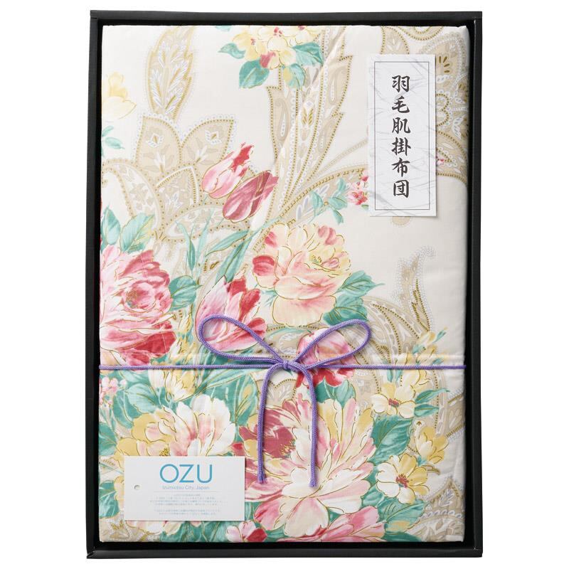 OZU 羽毛肌掛けふとん ピンク OZF-152 御祝.お返し,引出物,記念品などのご用途にも好適
