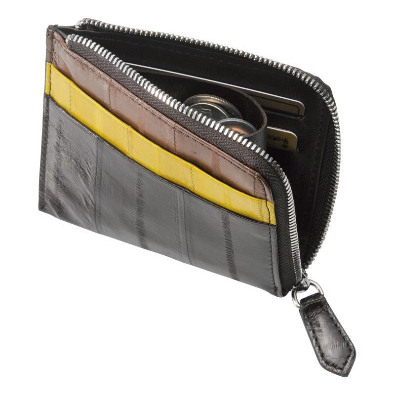 イタリア製の軽くて丈夫なウナギの革を使用した財布。エナメルのような美しい輝きを持ち背骨の跡が独特の縞模様を浮き立たせます。