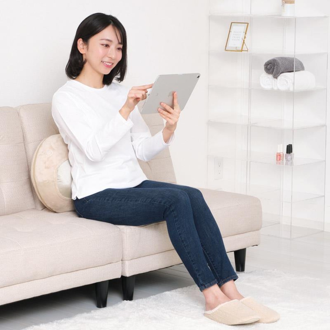 高さの異なるもみ玉が回転し、手もみ感覚のマッサージでコリをもみほぐします。外カバーは取り外しができ、ご家庭で洗濯ができるので清潔にお使いいただけます。使わないときは電源コードを内部に収納できるので、インテリアとしてもかわいいクッション型マッサージ器です。●約15分のオートオフタイマー機能付き