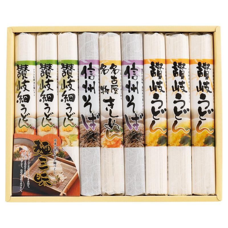 商品内容:讃岐うどん(150g)・讃岐細うどん(150g)×各3、信州そば(120g)×2、名古屋名物きしめん(150g)×1