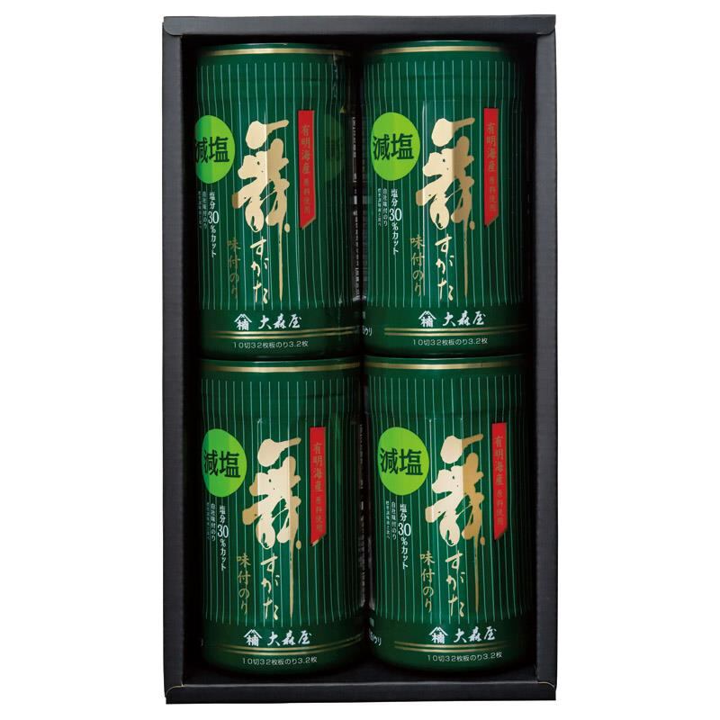 有明海産味付のり卓上タイプの詰合せギフトです。自社味付のり標準調味液と比べ、塩分を30%カットしました。