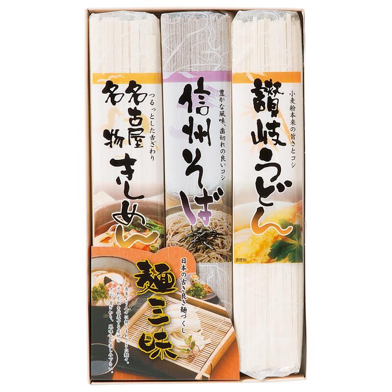 商品内容:さぬきうどん(150g)・信州そば(120g)・名古屋名物きしめん(150g)×各1