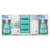 商品内容:ウタマロ洗濯石鹸(133g)×3、ウタマロキッチン(300ml)・ウォッシュタオル(280×300mm)×各2、マイクロファイバークロス(250×250mm)×1