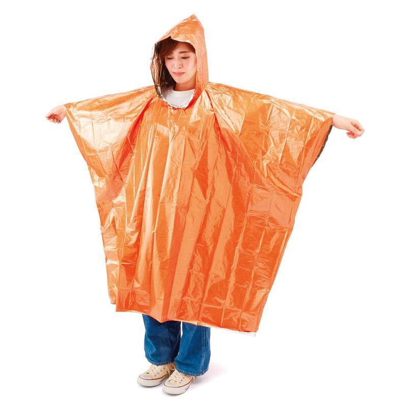 カサカサ音が少ないタイプ。ポンチョ型なので手が自由に使えて大変便利です。災害時や非常時にも、緊急用品として活用いただけます。