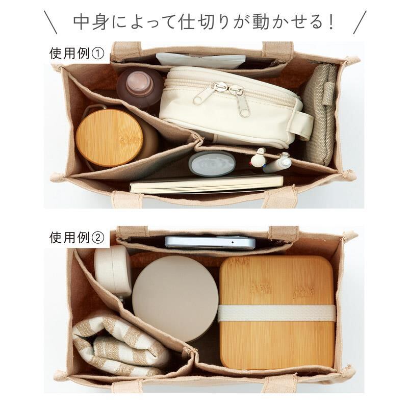 縫製工場などで発生した布の端切れを再利用した再生素材100%のコットンバッグです。仕切りは可動式で、入れるものによって合わせられます。12オンスのしっかりとした厚み。