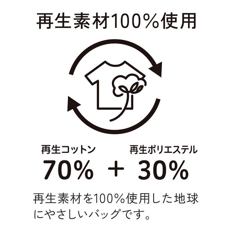 縫製工場などで発生した布の端切れを再利用した再生素材100%のコットンバッグです。仕切りは可動式で、入れるものによって合わせられます。12オンスのしっかりとした厚み。