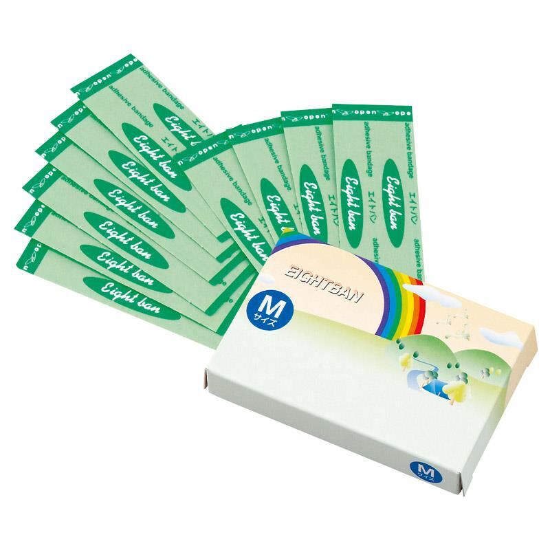 絆創膏Mサイズが10枚入のセット。化粧箱入で持ち運びにも便利。