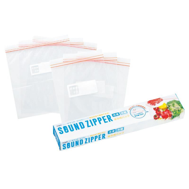 ジッパーを閉じると音が鳴り、しっかり閉じたかわかりやすい保存用パック。Mサイズ3枚とLサイズ3枚がセットで使い分けできて便利。