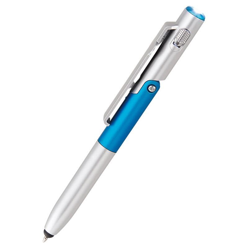 タッチペンの先からボールペンが出る便利なライト付ペンです。本体が折れて携帯電話スタンドとして使用できるユニークな機能付です。
