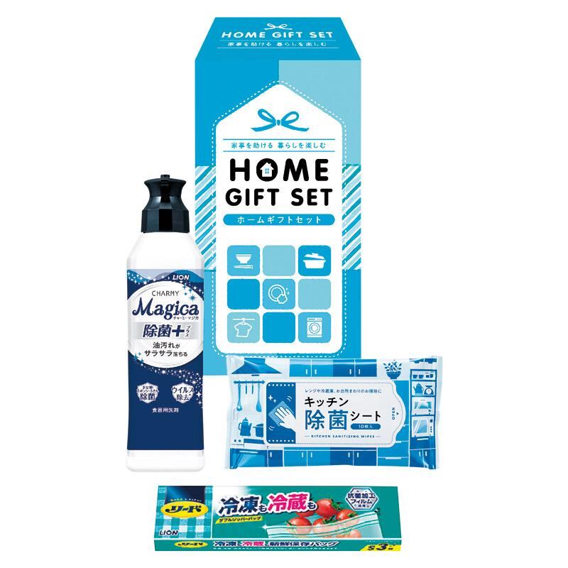 商品内容:ライオンチャーミーマジカ除菌プラス(220ml)・リード冷凍も冷蔵も新鮮保存バッグ(S3枚入)・キッチン除菌シート(10枚入)×各1