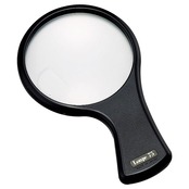 軽くて持ちやすいルーペです。レンズサイズ:直径75mm、倍率:2倍(小レンズ4倍)。