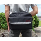 現品サイズ:イスへの取り付けができ、オフィスでの常備がしやすい。収納用バッグはショルダー、ウエストポーチで使える2WAYタイプ。