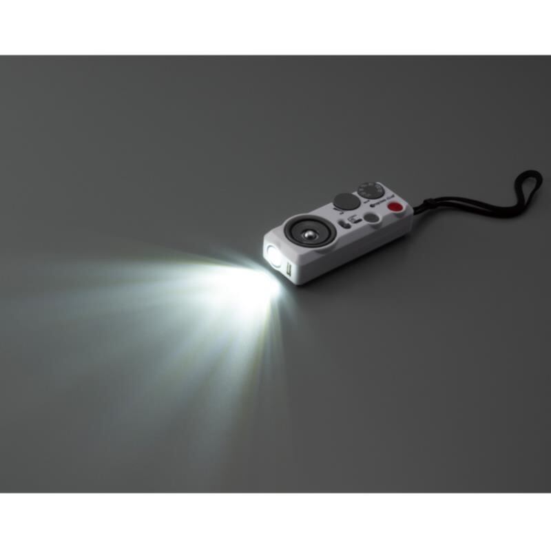 性能:LEDライト(強/弱)・サイレン(点滅灯連動)・ラジオ(AM/ワイドFM)・携帯電話充電機能・イヤホンジャック(イヤホン別)