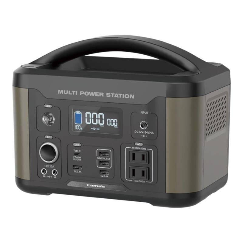 現品サイズ:136800mAh(506Wh)の大容量バッテリー搭載ポータブル電源。コンセントがないアウトドアで小型テレビや電気ドリル等が使えるACコンセント、スマートフォンを複数同時に充電できるUSBポート、カー用品が使えるアクセサリーソケット搭載。さまざまな電化製品の電源供給に最適な