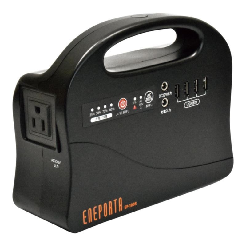 現品サイズ:災害による停電の備えに、電源のない場所での作業にコンセント代わりに使える蓄電源です。AC100V電源から内蔵充電池(50400mA/186wh)にわずか8〜9時間で充電、スマートフォン(2000mA)充電=約8回、照明器具(20W)=約5.5時間、液晶テレビ(70W)=約2時間使用できます。