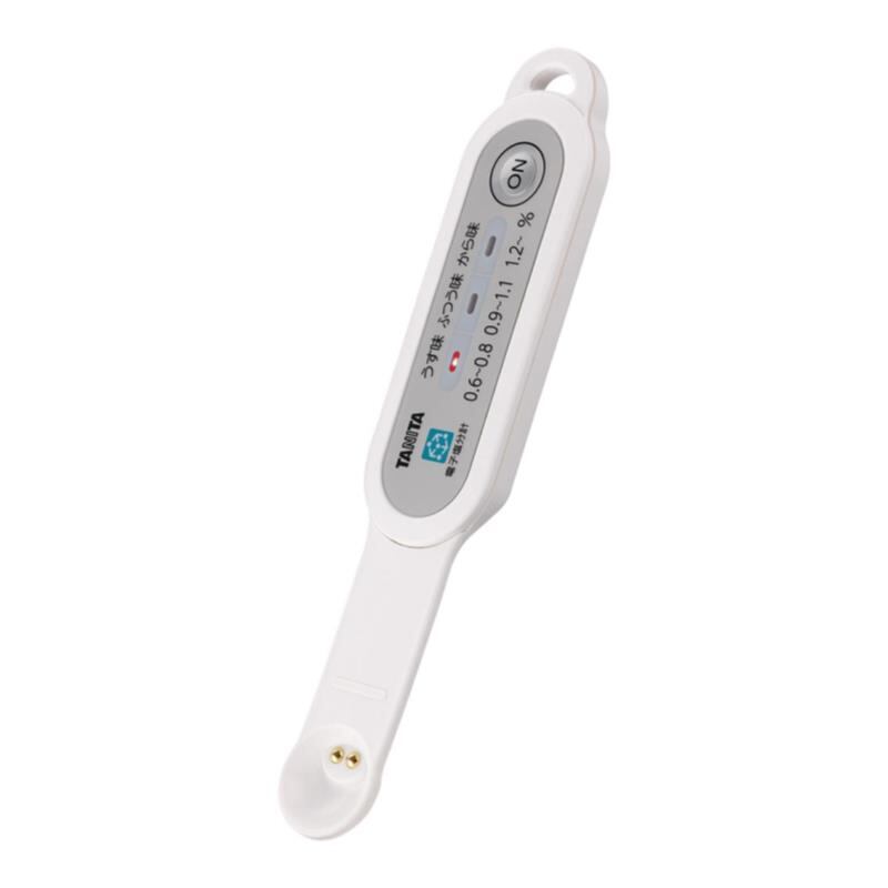 現品サイズ:食品が触れる部分にビスフェノールA(BPA)を含まない樹脂を使用し、より使いやすくなったスプーンタイプの塩分計。