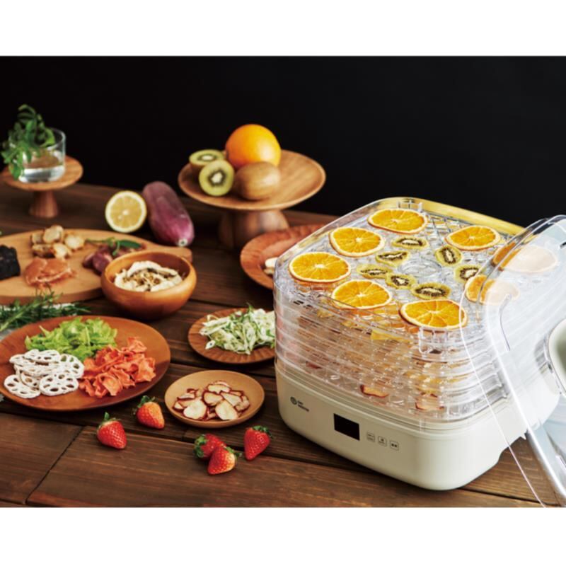 現品サイズ:食材の旨みと栄養をギュッと凝縮。自宅で簡単にドライフードづくり。ドライフードは食材の旨みや栄養をギュッと凝縮できるだけでなく、長期保存もできるのでフードロスを減らすメリットも。ベランダ干しは虫や人目がちょっと気になるところもありますが、ドライマイスターが