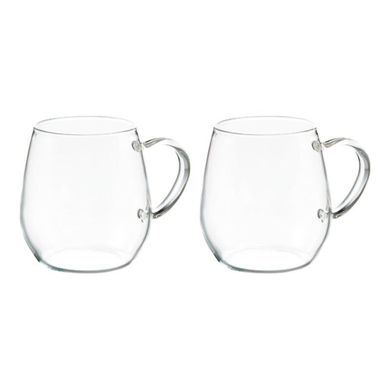 現品サイズ:丸くてかわいいフォルムのマグ2個セット。耐熱ガラス製で、電子レンジもご使用できます。
