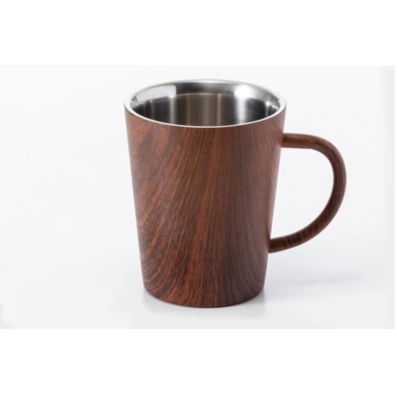現品サイズ:木目調の外側デザインと鏡面加工の内側、ステンレス素材の光沢感が金属と木目のコントラストを演出、落ち着いたドリンクタイムを演出します。