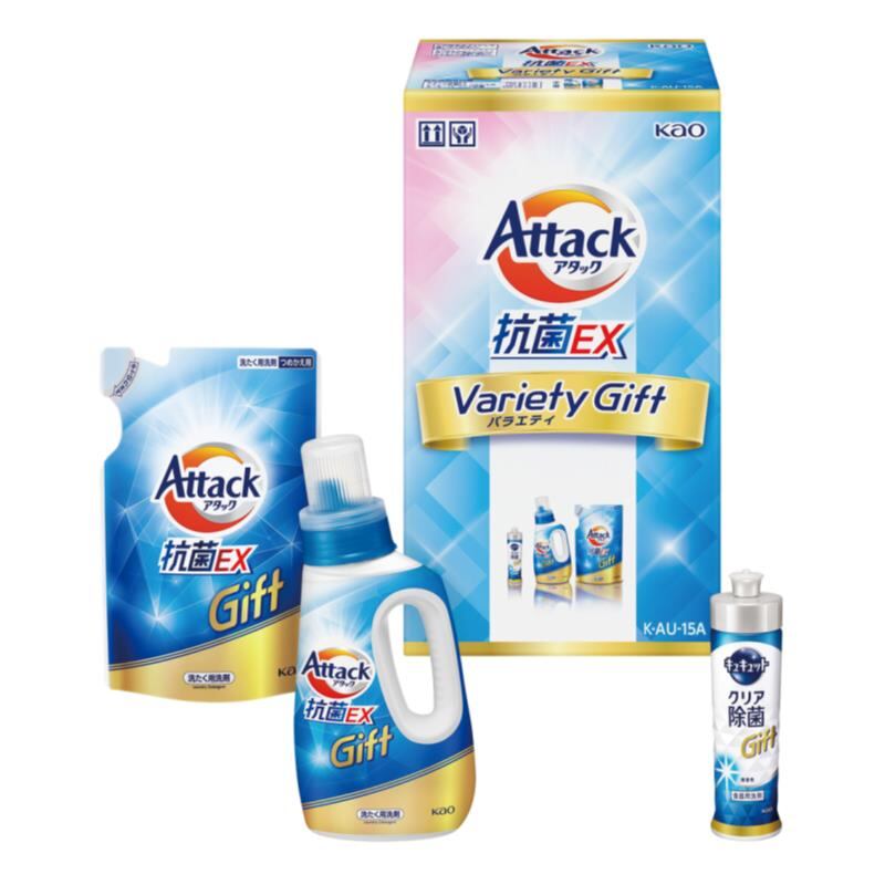 付属品:アタック抗菌EX贈答用750g、詰替590g・キュキュットクリア除菌贈答用220mL