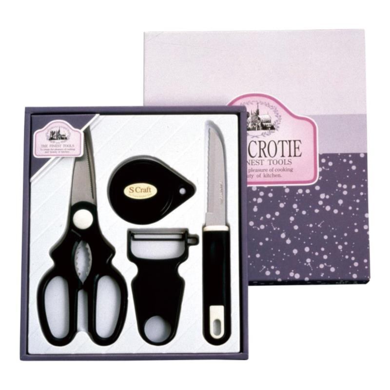 付属品:キッチン鋏・皮引き・ユーティリティナイフ・缶キャップ(日本)・取説