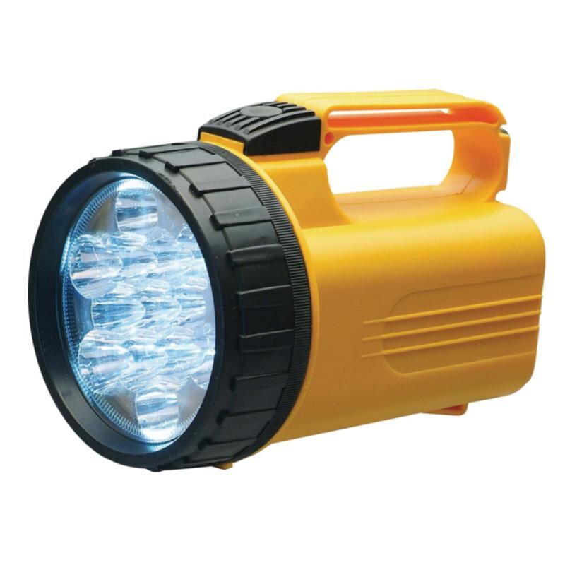 現品サイズ:13個のLEDで約1km先まで光が届く超高性能ライト。単1乾電池4個で連続約50時間使用可能。LED電球の寿命は約10万時間。ストラップ付。停電・災害時の備えやアウトドアに最適です。