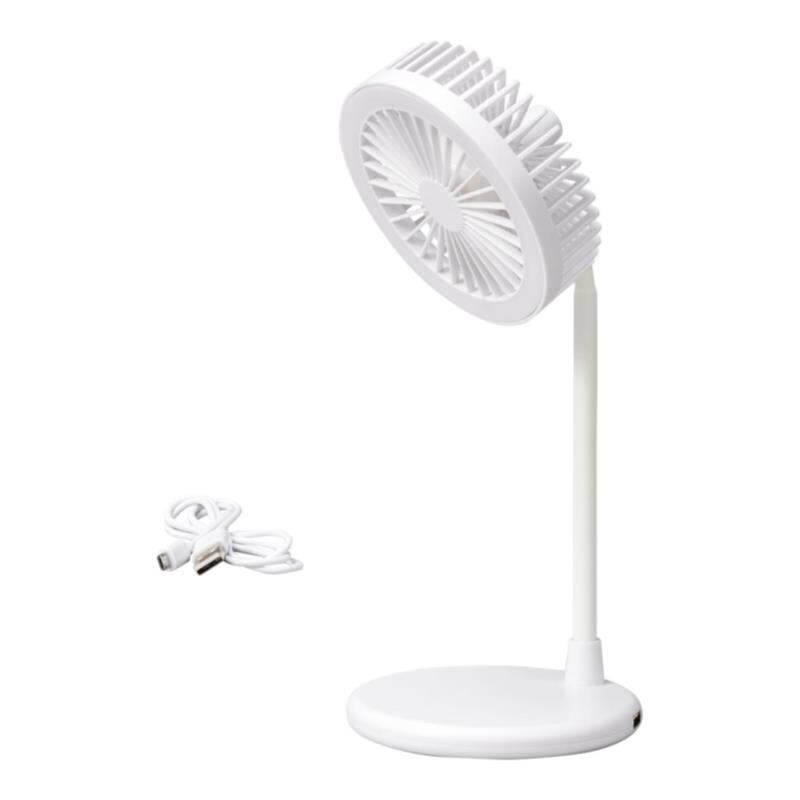 現品サイズ:USB電源使用の小型扇風機付LED電気スタンドです。USBハブ(USB2.04ポート)を搭載し、扇風機は3段階に速度を変更できます。ライトの明るさも無段階で調光可能。