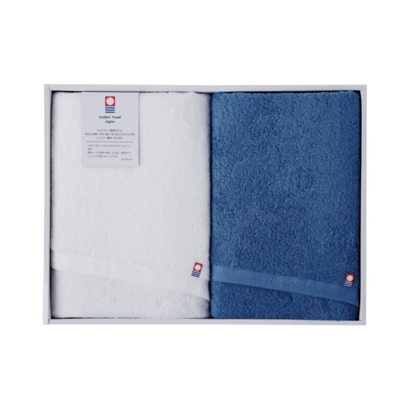 今治ピュアカラー甘撚りタオルギフト B/ホワイト×ダークブルー IA-2420-DBL