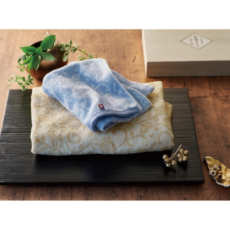 現品サイズ:百二十年の歴史と受け継がれる職人技が光る情緒あふれる今治タオルを高級感漂う木箱に丁寧に詰め合わせた特別な贈りもの 自然を感じる上品な色合いと細やかな折柄が美しい今治タオルは感謝を込めた大切な方への贈りものとして最適な逸品です