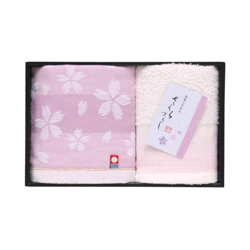 現品サイズ:日本のタオルの名産地今治と泉州のタオルセットを桜だよりにのせて・・・ 今治タオル日本を代表する花「桜」をモチーフに今治の特徴である先染めのジャガードを希少な織り方「2紋体ガーゼ」で丁寧に織り上げました。泉州タオル:原糸を精錬する工程で使用薬剤を可能な限り